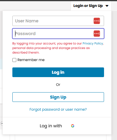 Uppe till höger på sidan finns knappen Login or Sign Up.